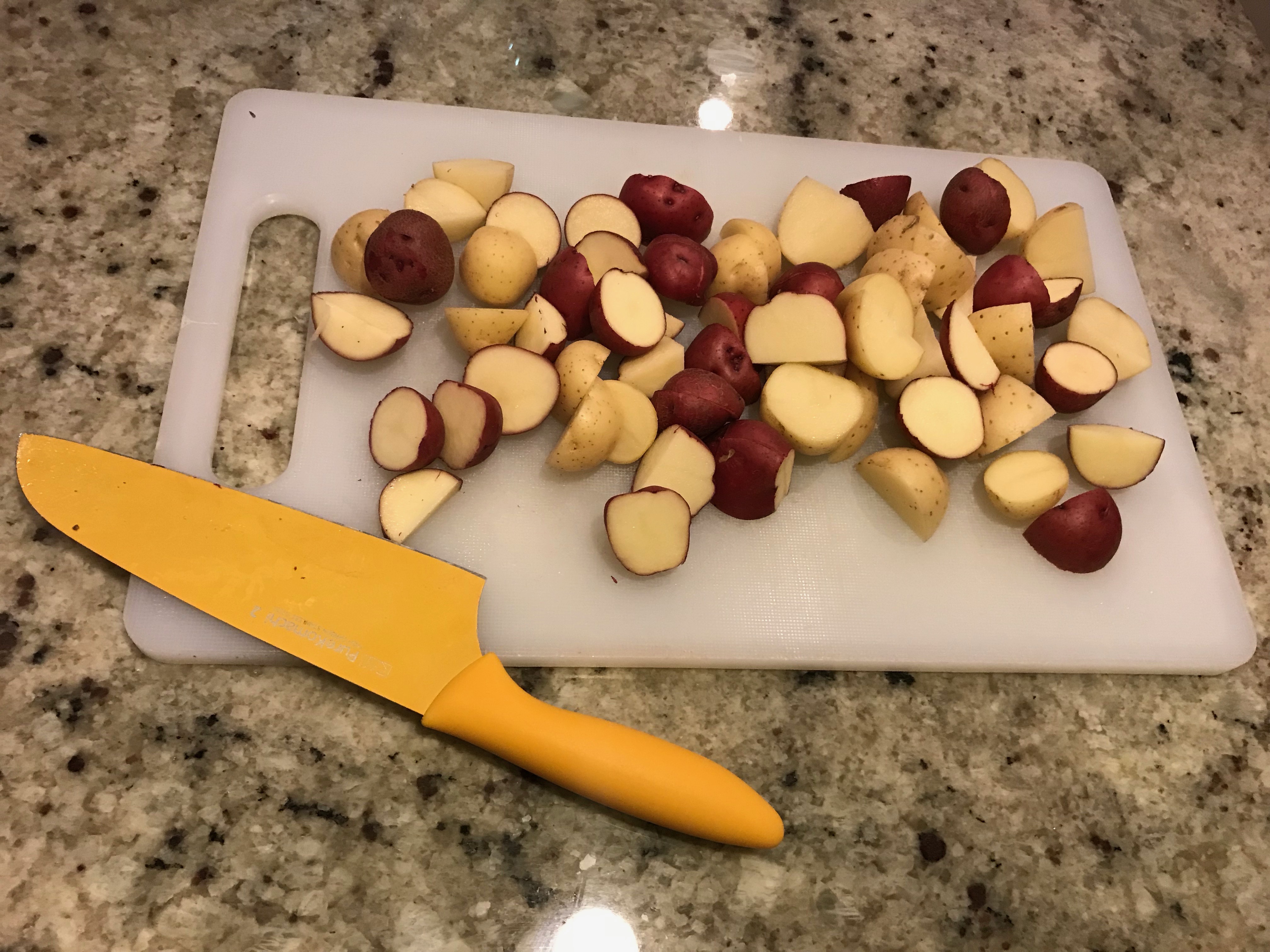If you are even the slightest bit hungry for crispy roasted potatoes, you’re too late. Banish this thought from your mind and replace it with the measured anticipation of eating regular roasted potatoes. The length of time it takes to make crispy roasted potatoes will always eclipse the amount of time your hungry stomach can wait to eat crispy roasted potatoes.